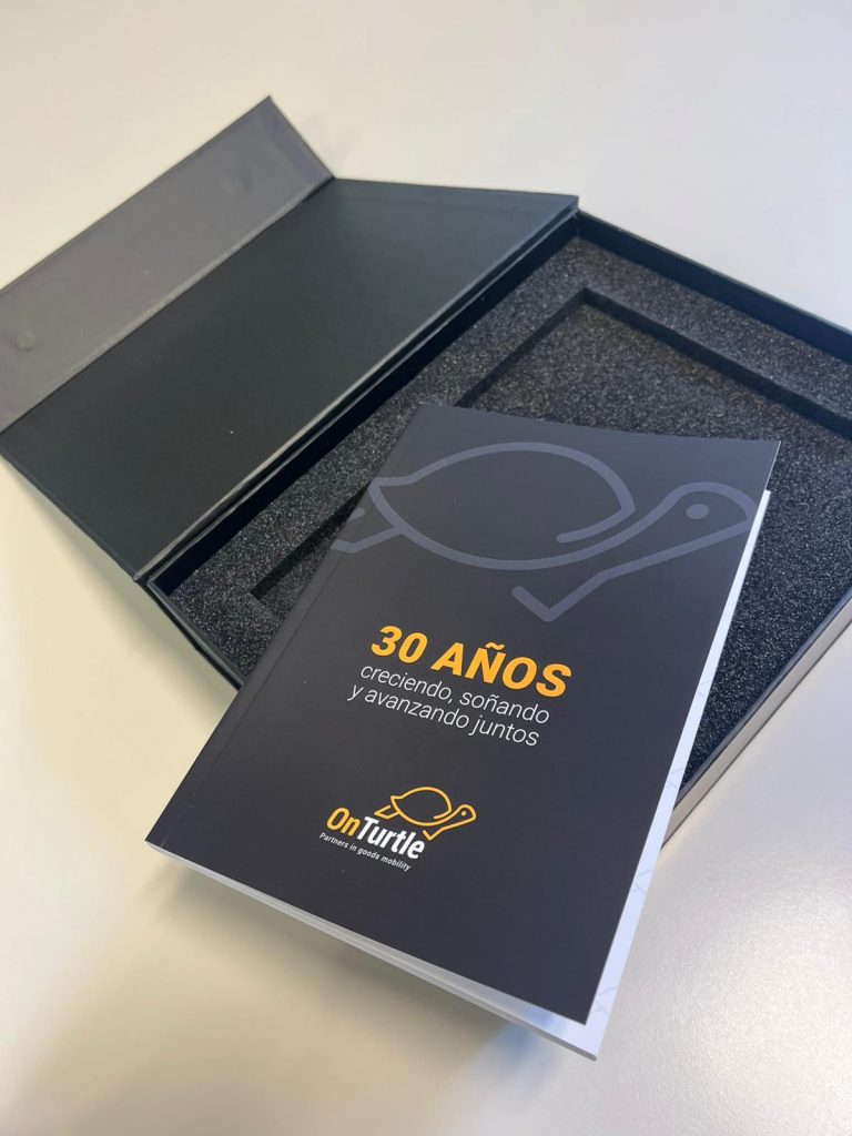 La experiencia no terminaba en las páginas. El libro se presentó dentro de una elegante caja negra, diseñada para provocar anticipación y admiración antes de abrirla. Con los colores corporativos de Onturtle y la frase que resume su filosofía: